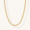 Chain: 5 mm beads made of 18K gold dipped stainless steel and silver plated stainless steel